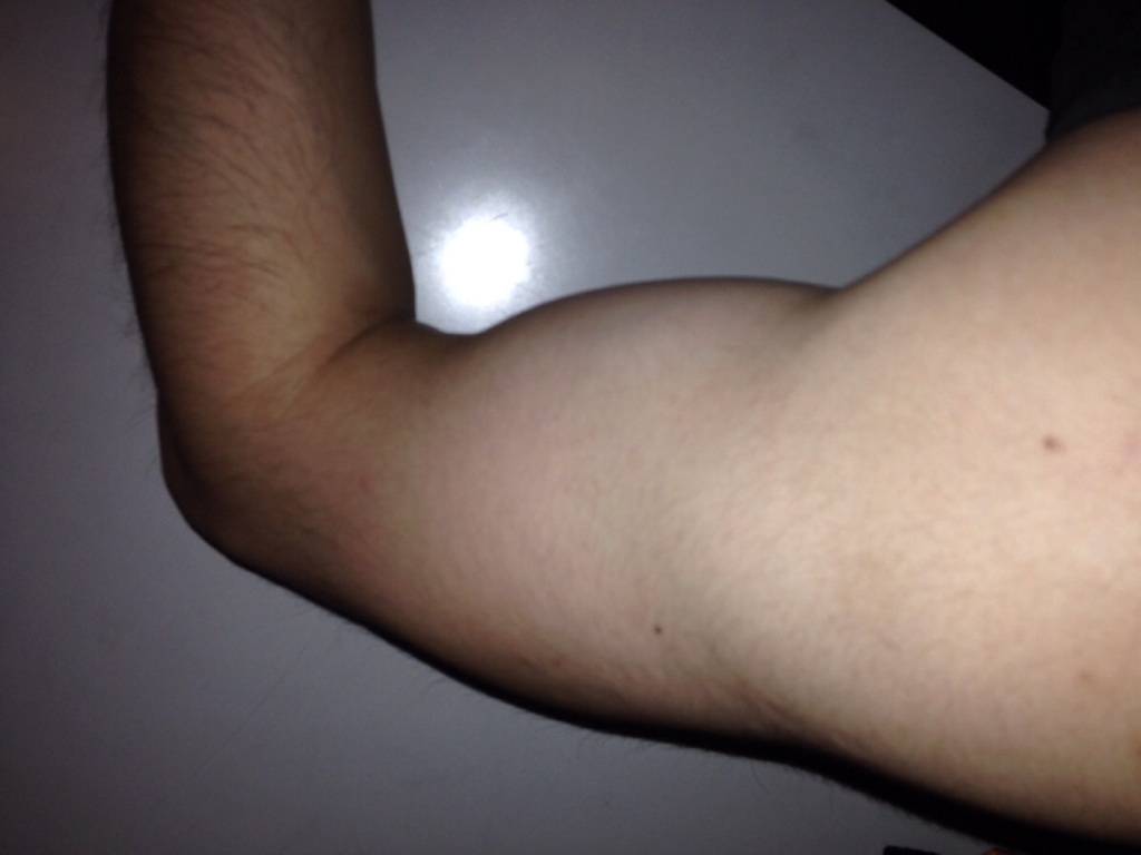 蕁麻疹。今日はお風呂上がりで出てたなー。